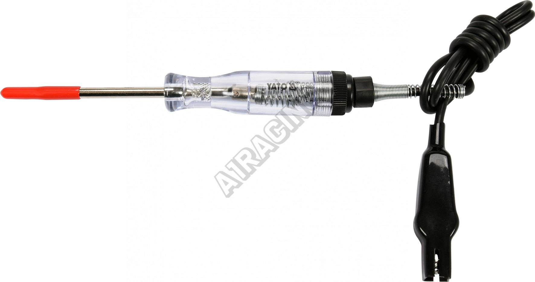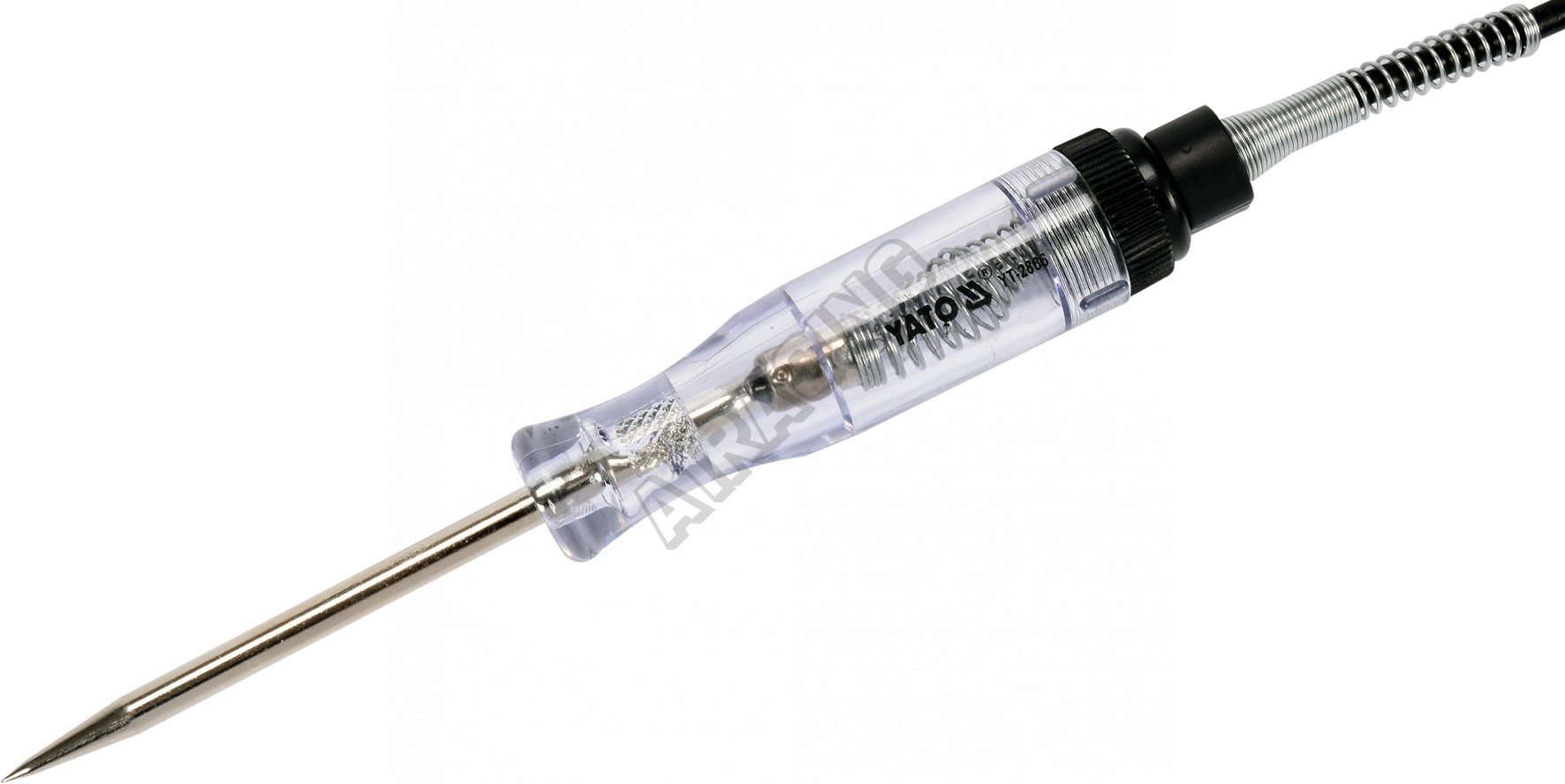 Zkoušečka vhodná pro opravy automobilů. Napětí stejnosměrné 6-12V. Signalizace LED diodou, délka kabelu 90 cm.