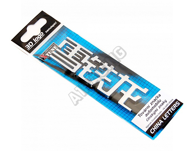 Plastový samolepící emblém řady 3D logo s povrchovou úpravou chrom. Motiv evropské značky automobilů psané čínskými znaky. Řada China letters.
