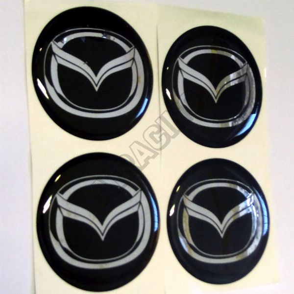 Znak Mazda průměr 55 mm, 4 ks Samolepka 3D na kryty kol 4ks Mazda - jsou vhodné hlavně pro středy