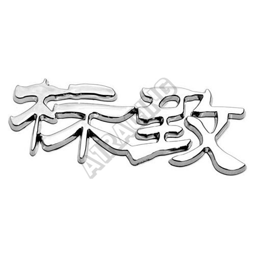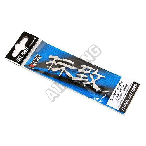 Plastový samolepící emblém řady 3D logo s povrchovou úpravou chrom. Motiv evropské značky automobilů psané čínskými znaky. Řada China letters.