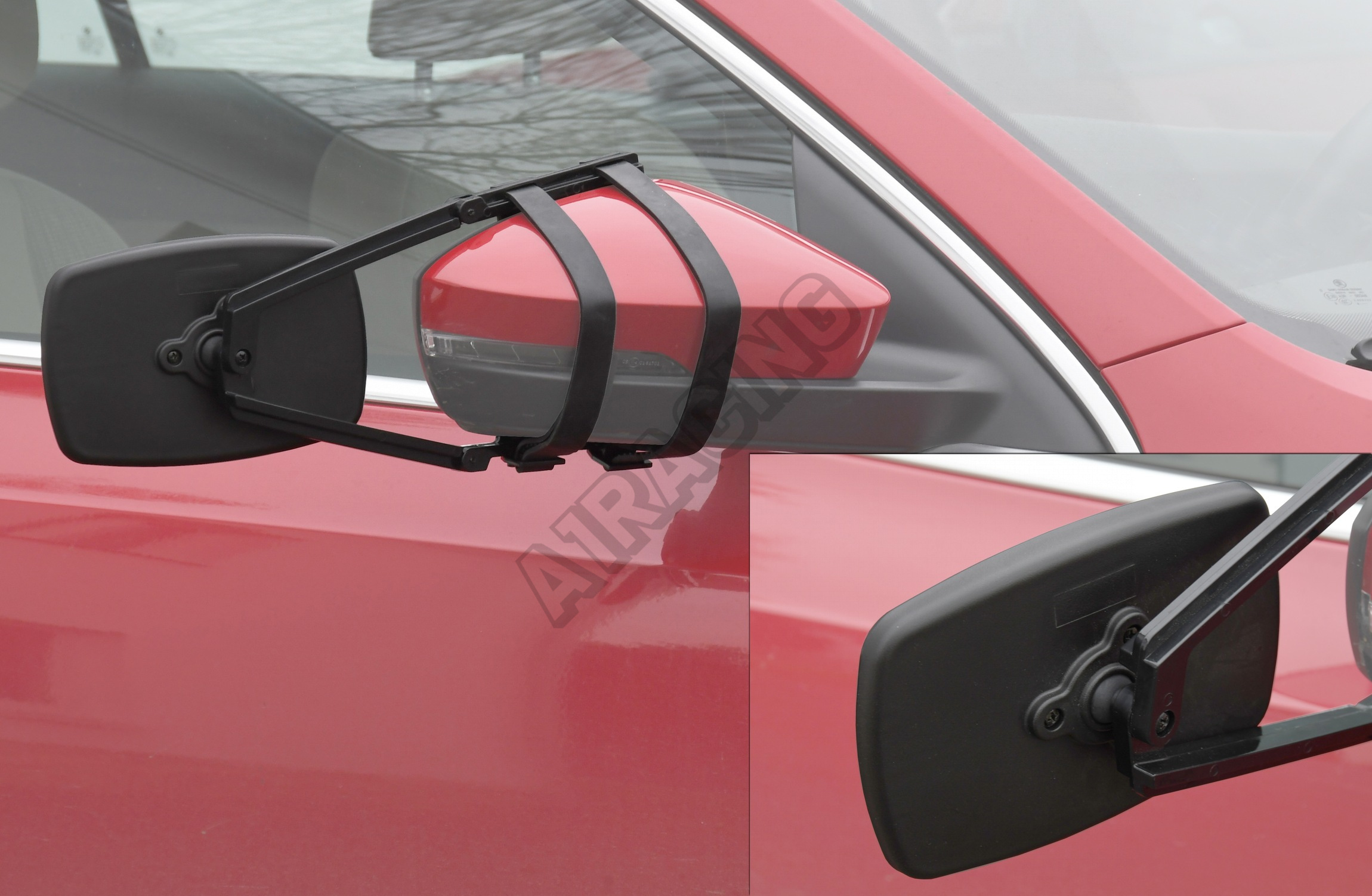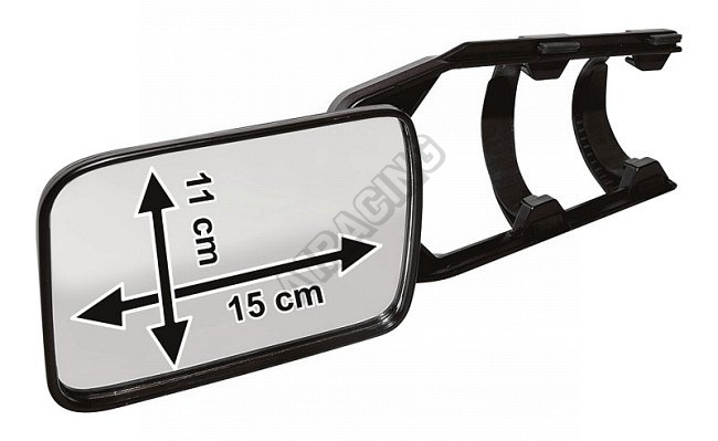 Přídavné boční zrcátko s nastavitelným úhlem do všech stran. Vhodné téměř pro všechny typy vozidel, připevňuje se na stávající boční zpětné zrcátko. Díky gumovým upínačům zrcátko nevibruje. Lze použít pro levou i pro pravou stranu. Ideální pomocník pro jízdu s přívěsem či karavanem. Neomezuje funkci stávajícího zrcátka. Plocha zrcátka 11 x 14 cm, homologace E4.